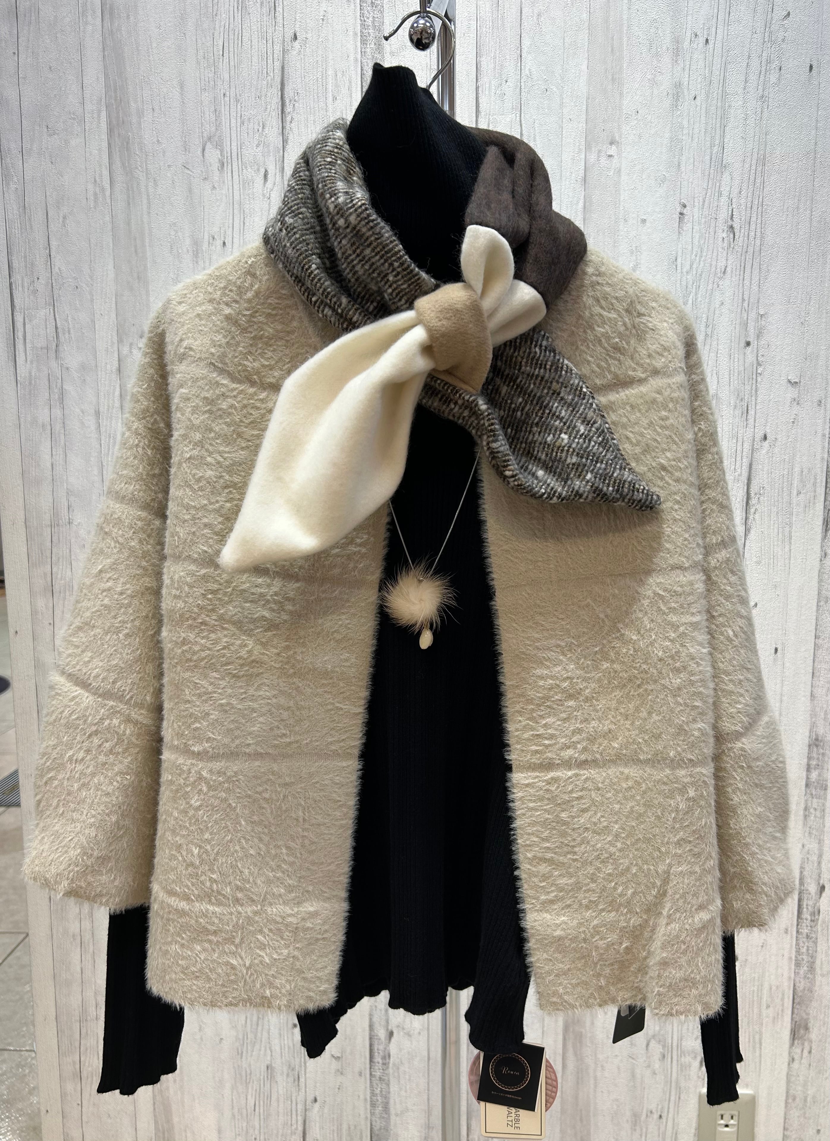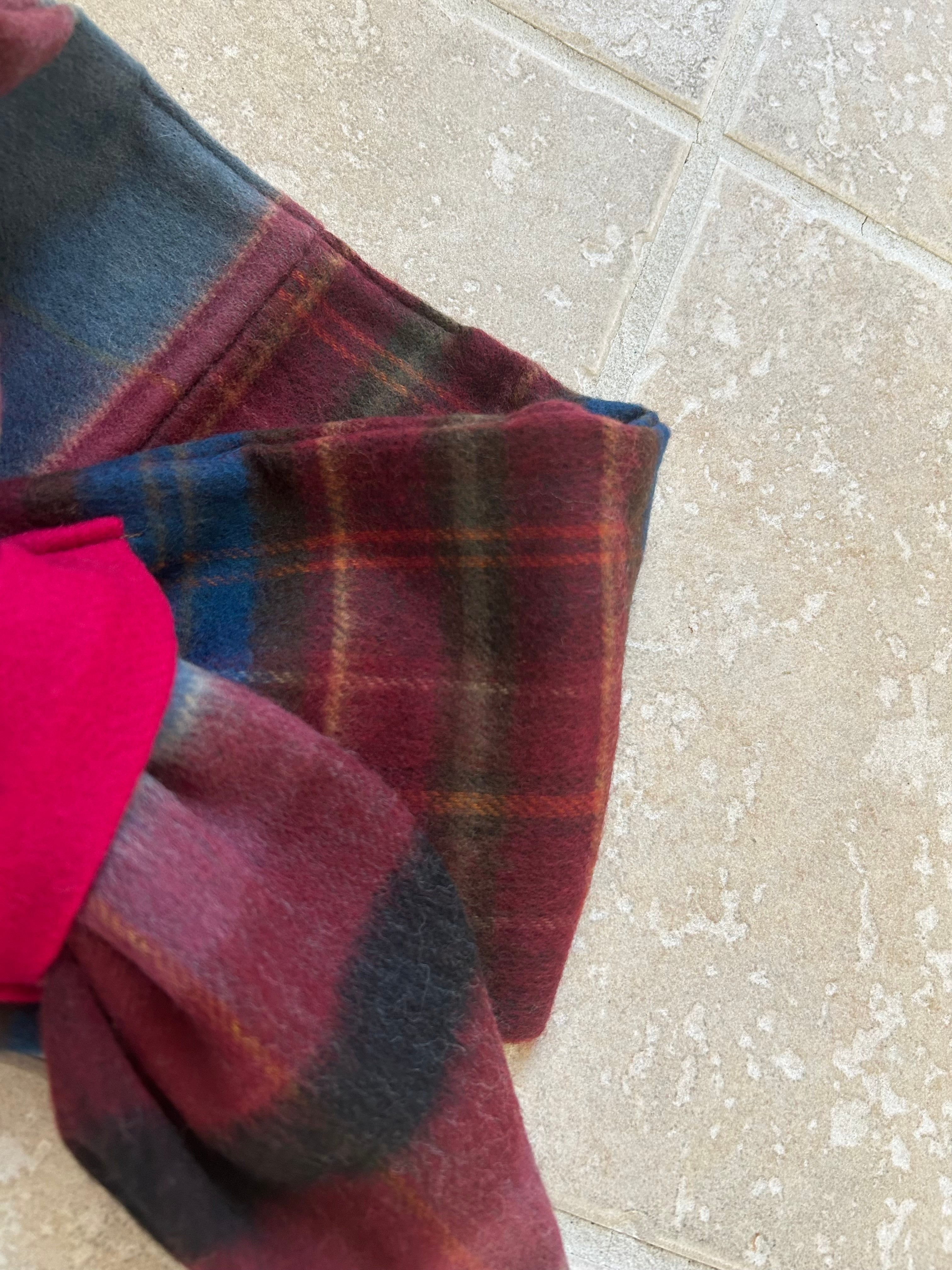 カシミヤ混の上質ウールのマフラー生地を繋げてオリジナルのプチマフラーを作りました