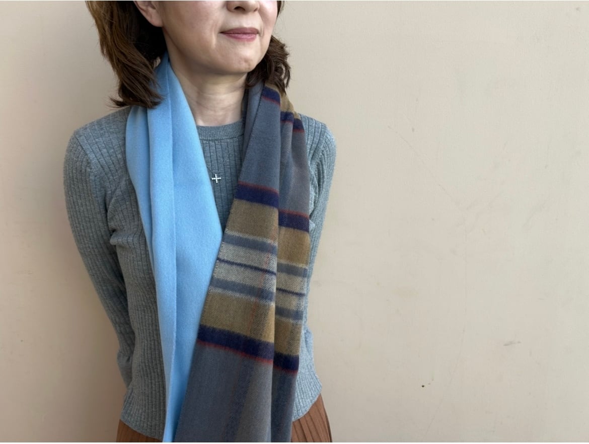 普段マフラーを上手く巻くのが苦手という方、他では見ないチェックや配色を喜んでくださるオシャレな方、ミラーがなくても簡単にササッと巻きたい方、、、