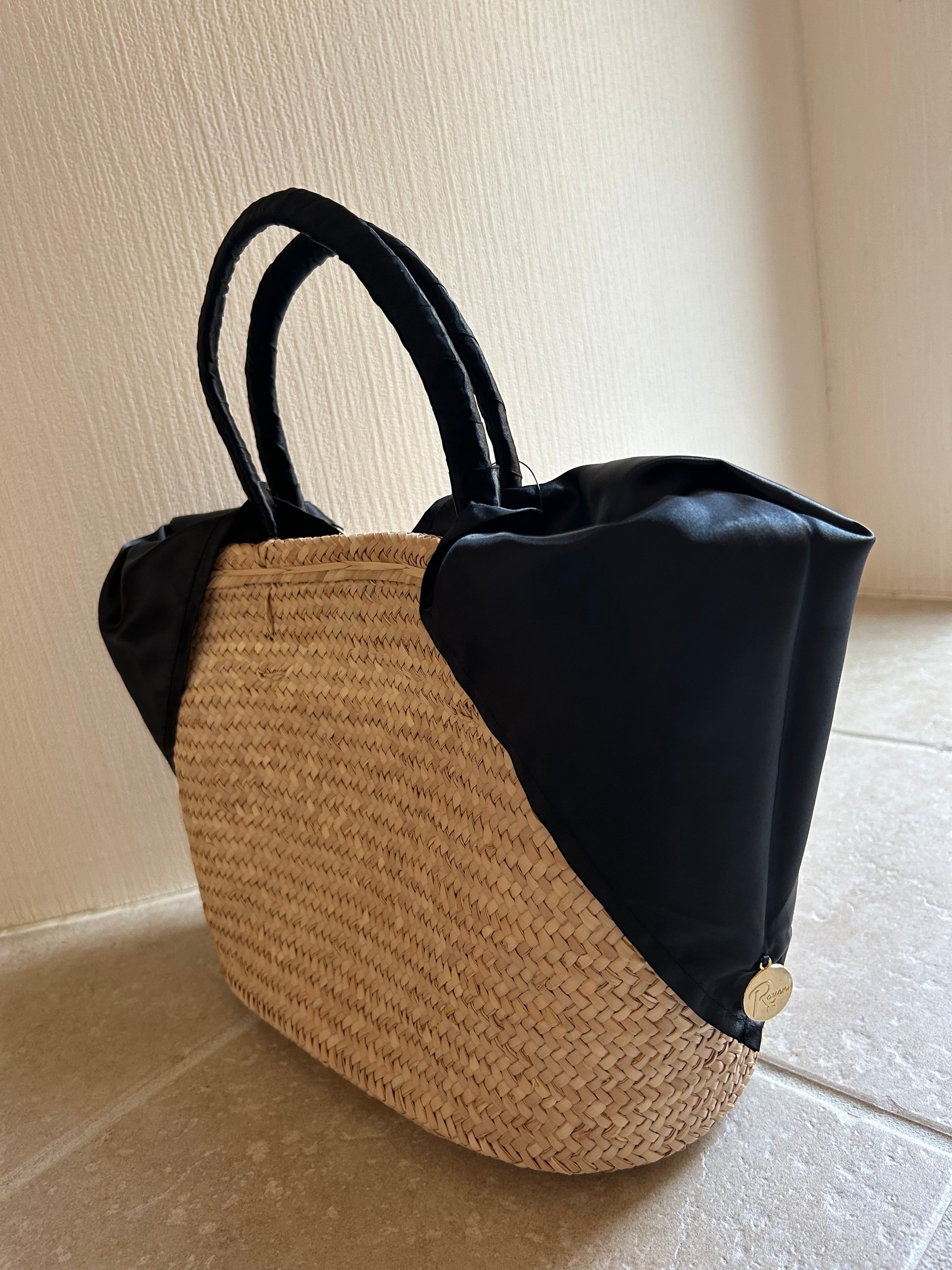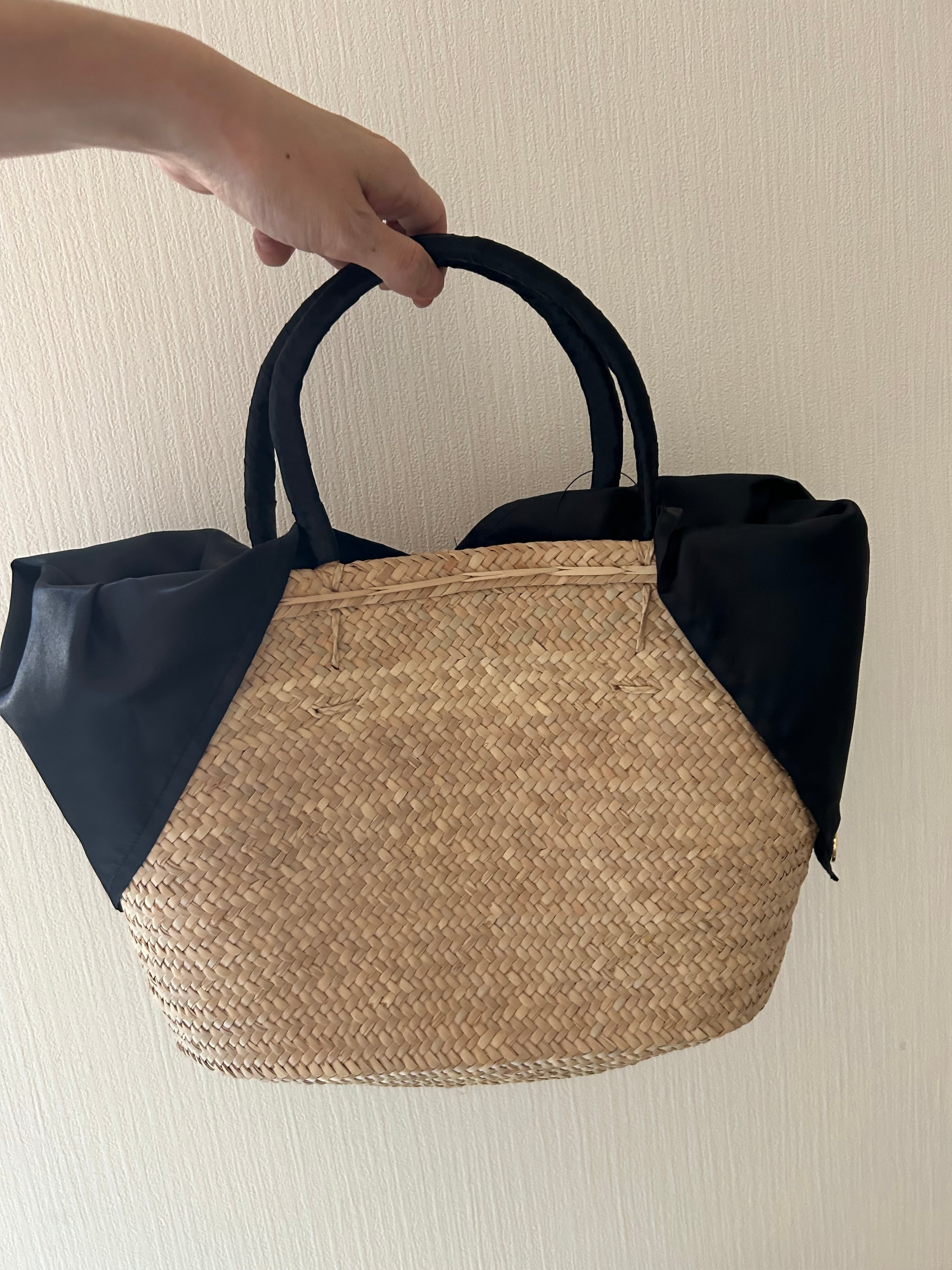 内布付きカゴバッグ 黒
